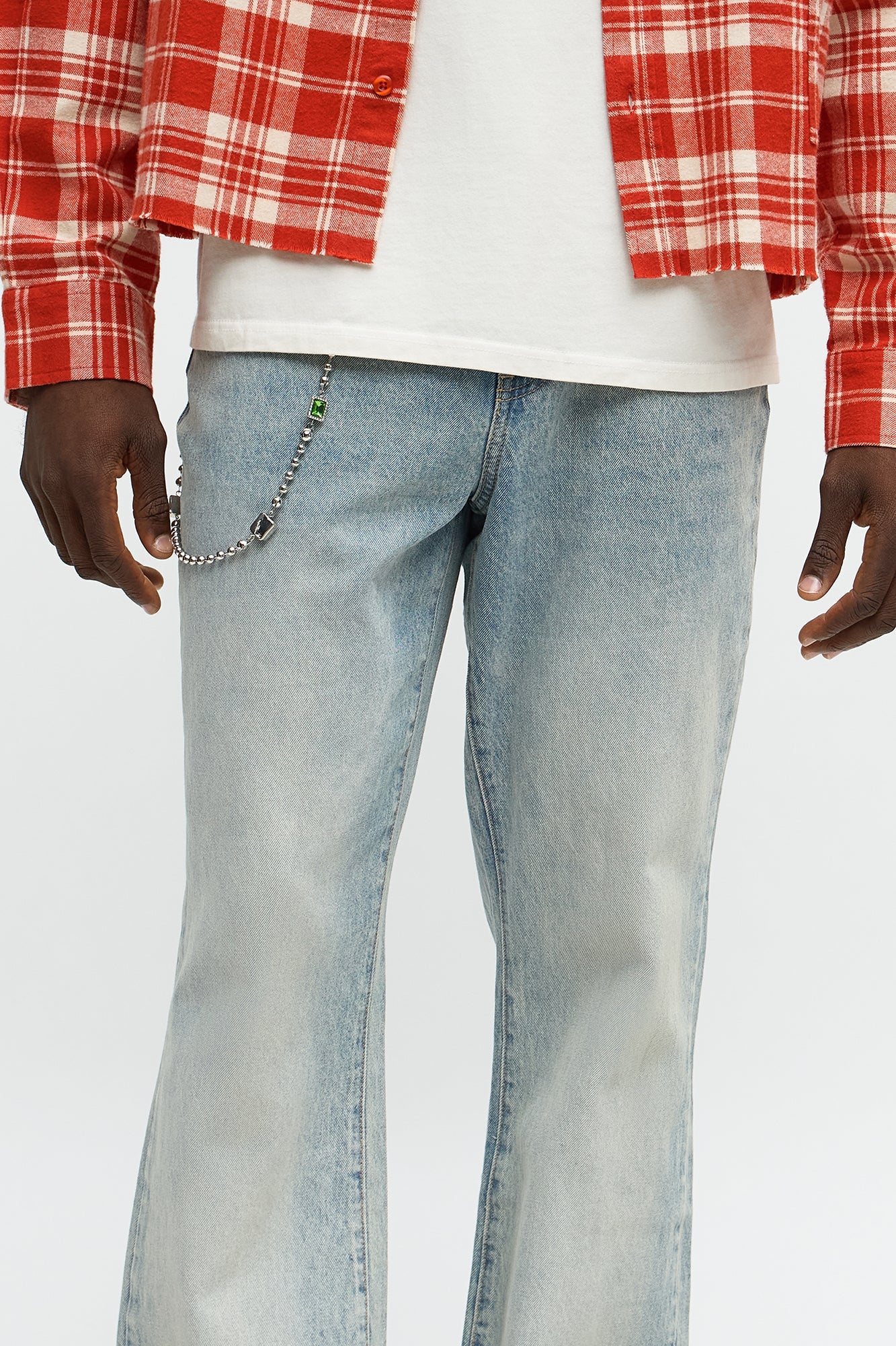 Straight Flare Snapped In Jean - Vintage Blue Wash