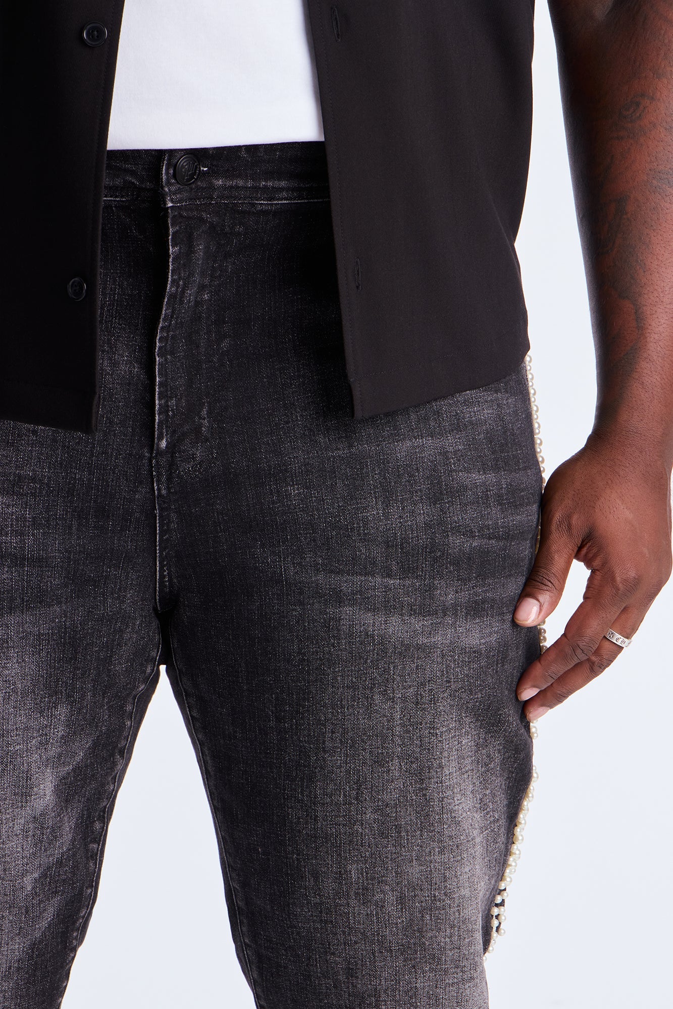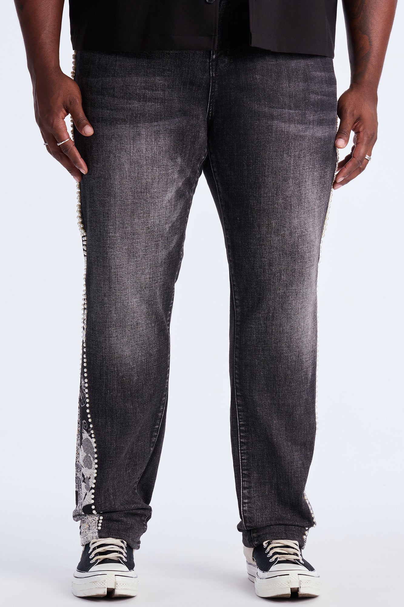Straight Pearl Panel Tapestry Jean - Black Wash