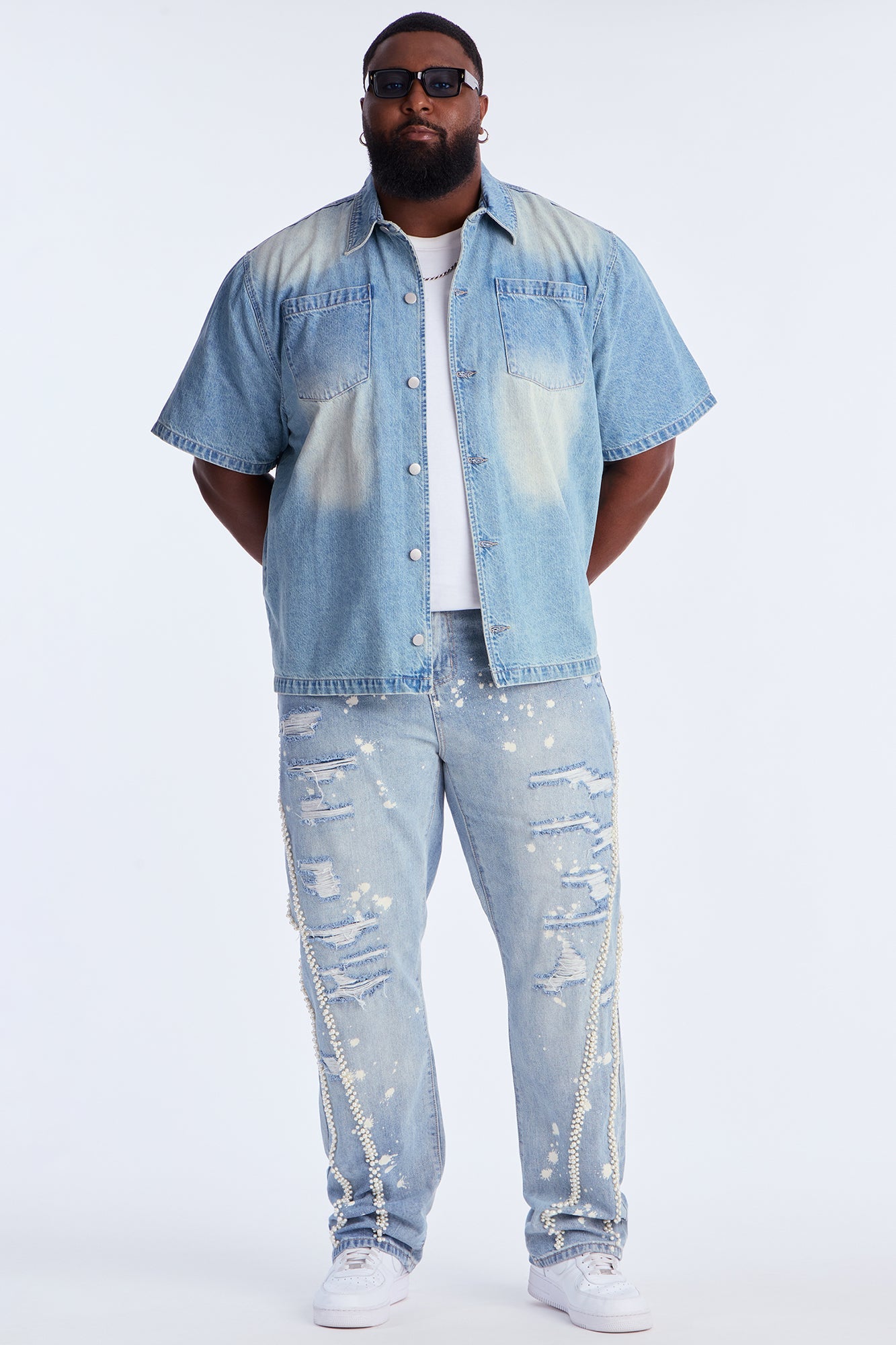 Straight Pearls And Destroyed Bleached Jean - Light Wash