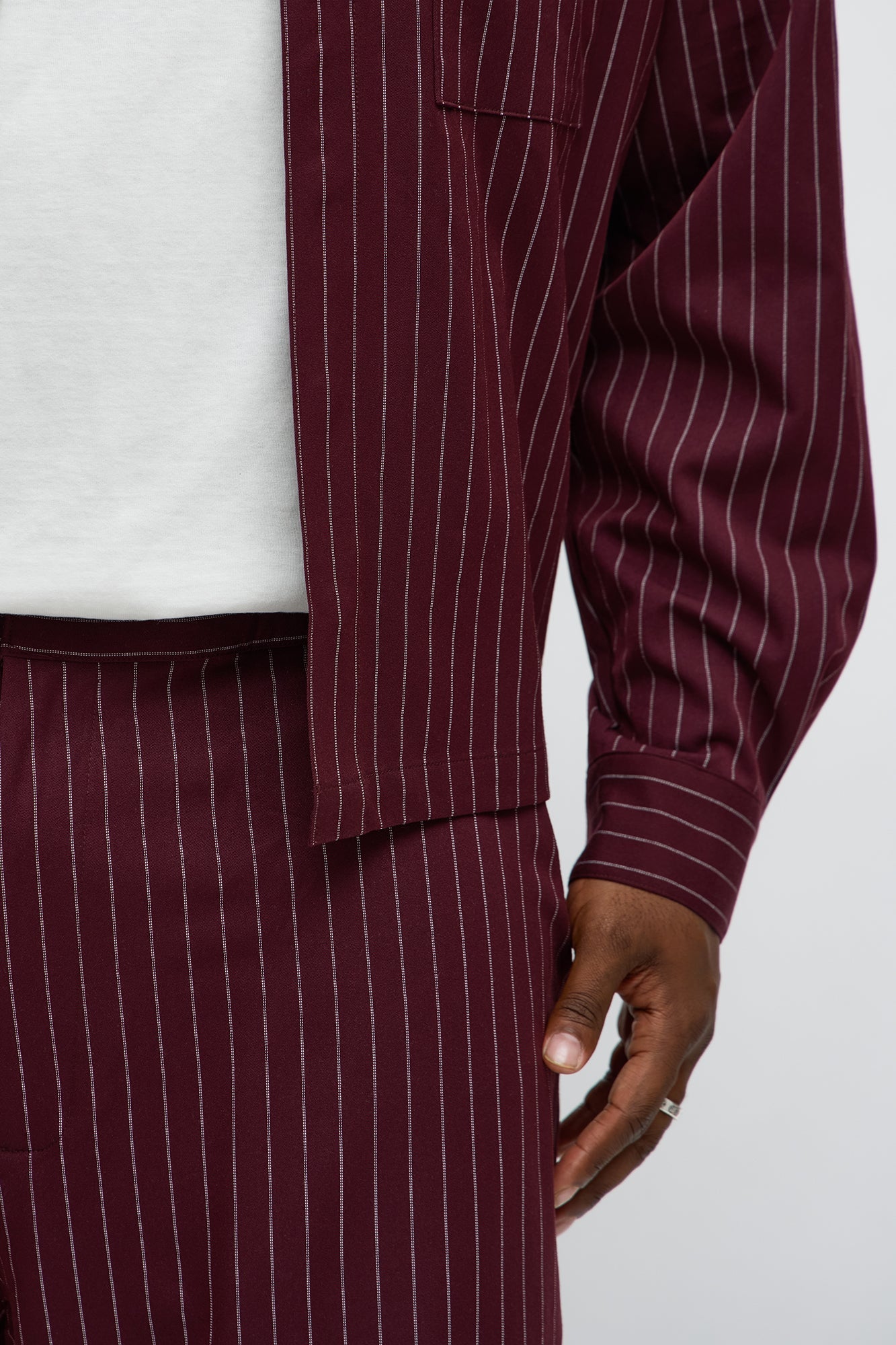 Wide Leg Straight Striped Trouser - Burgundy
