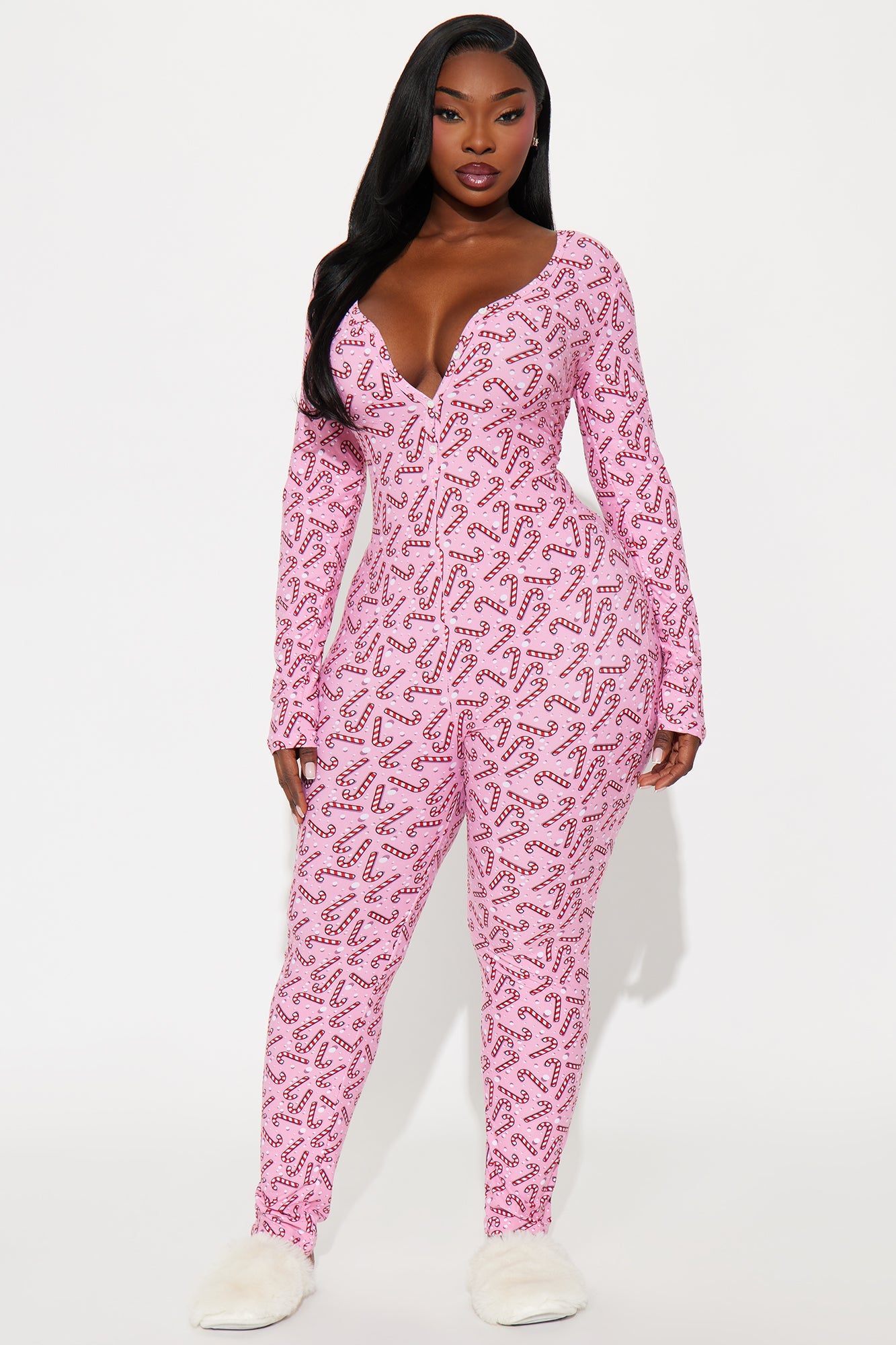 Sweet Candy Cane Long Sleeve PJ Jumpsuit Onesie - Pink