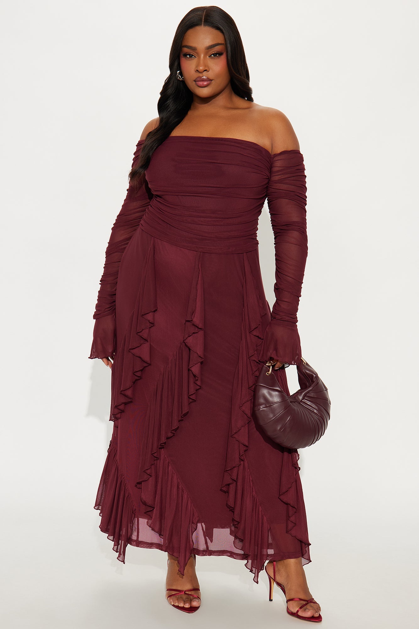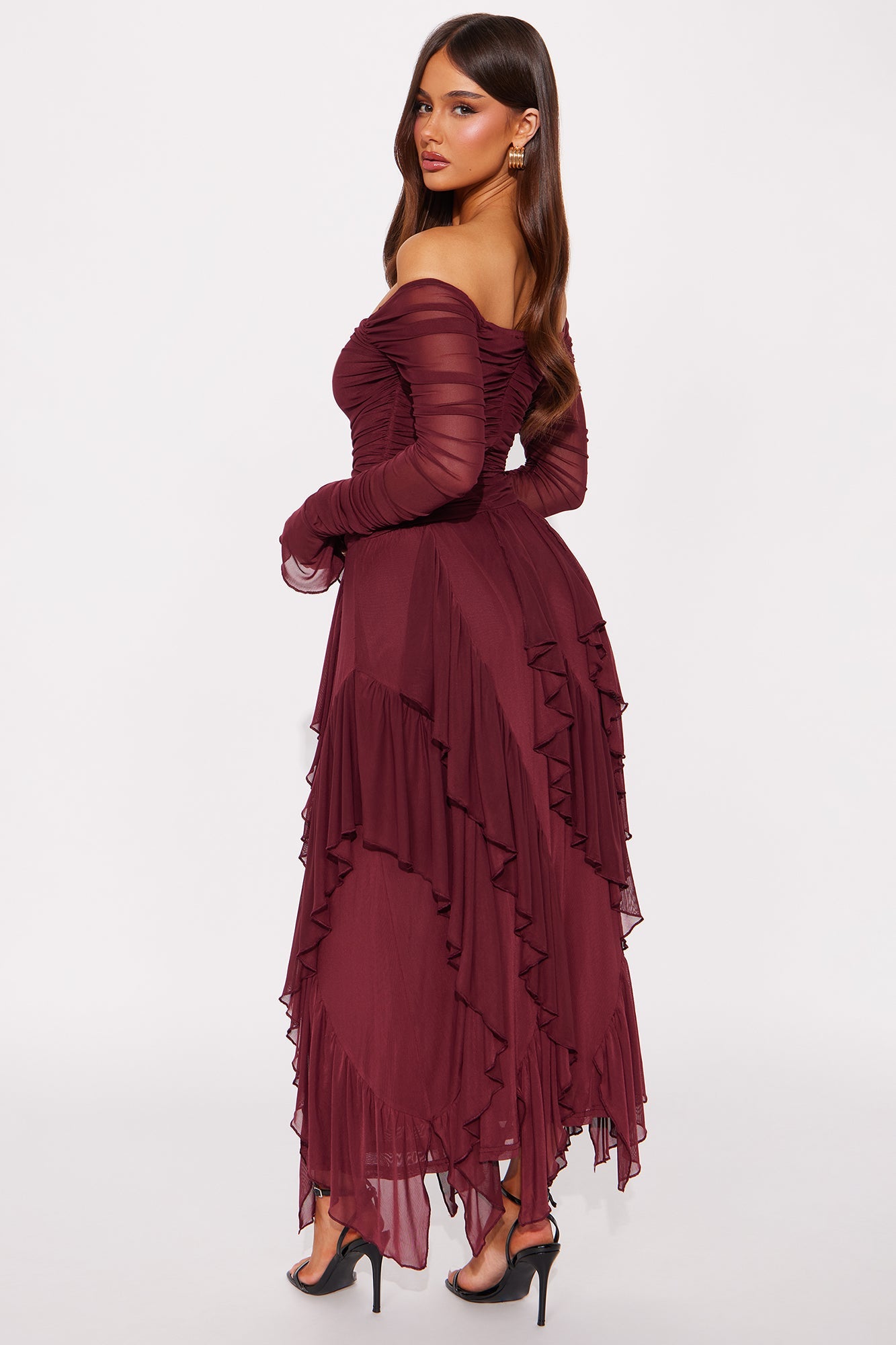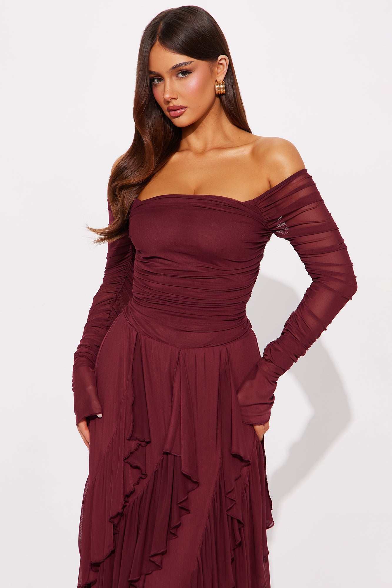 Sweet Honey Mesh Maxi Dress - Burgundy