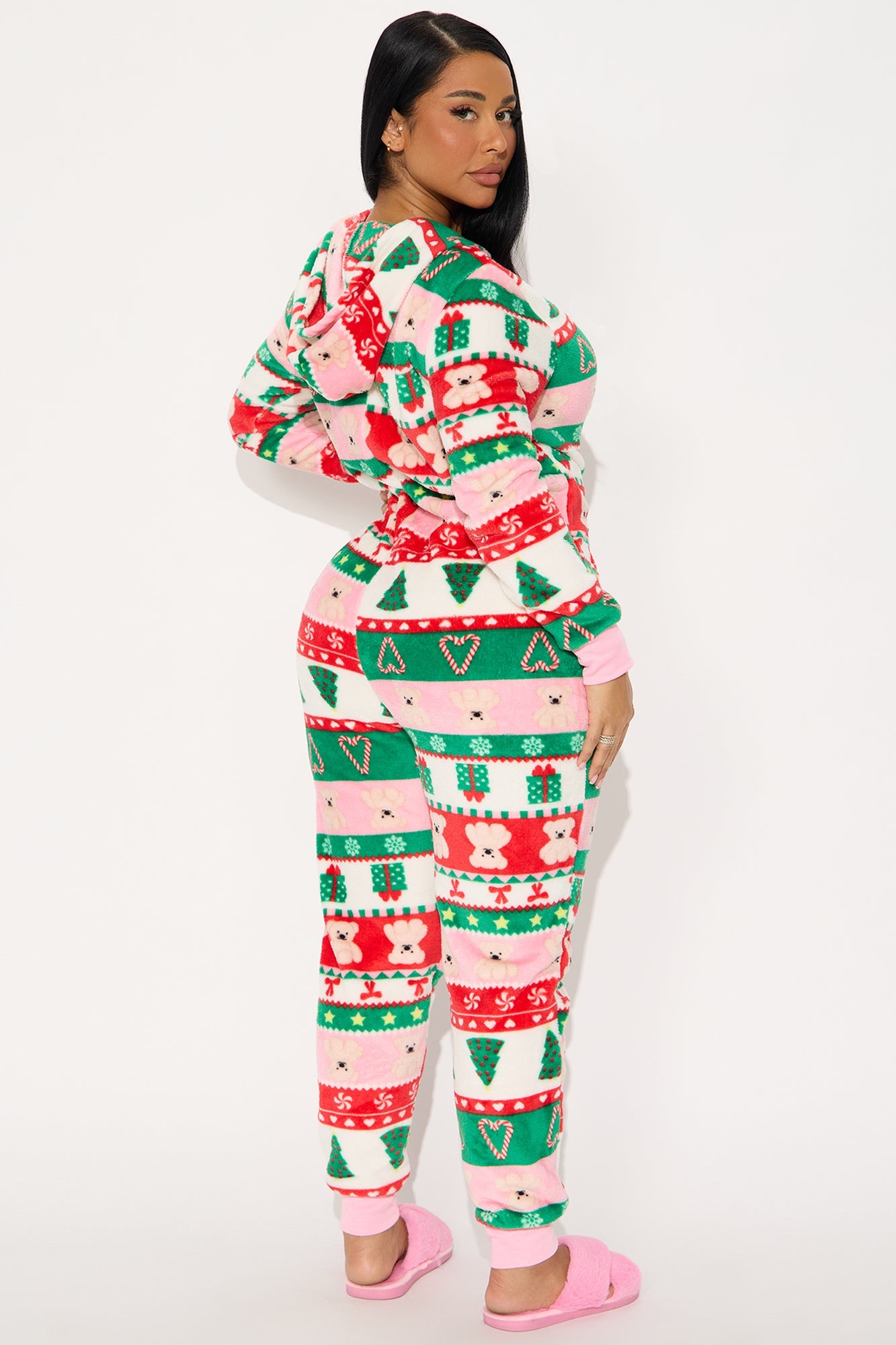 Sweetest Holiday Plush Hoodie PJ Jumpsuit Onesie - Green/combo