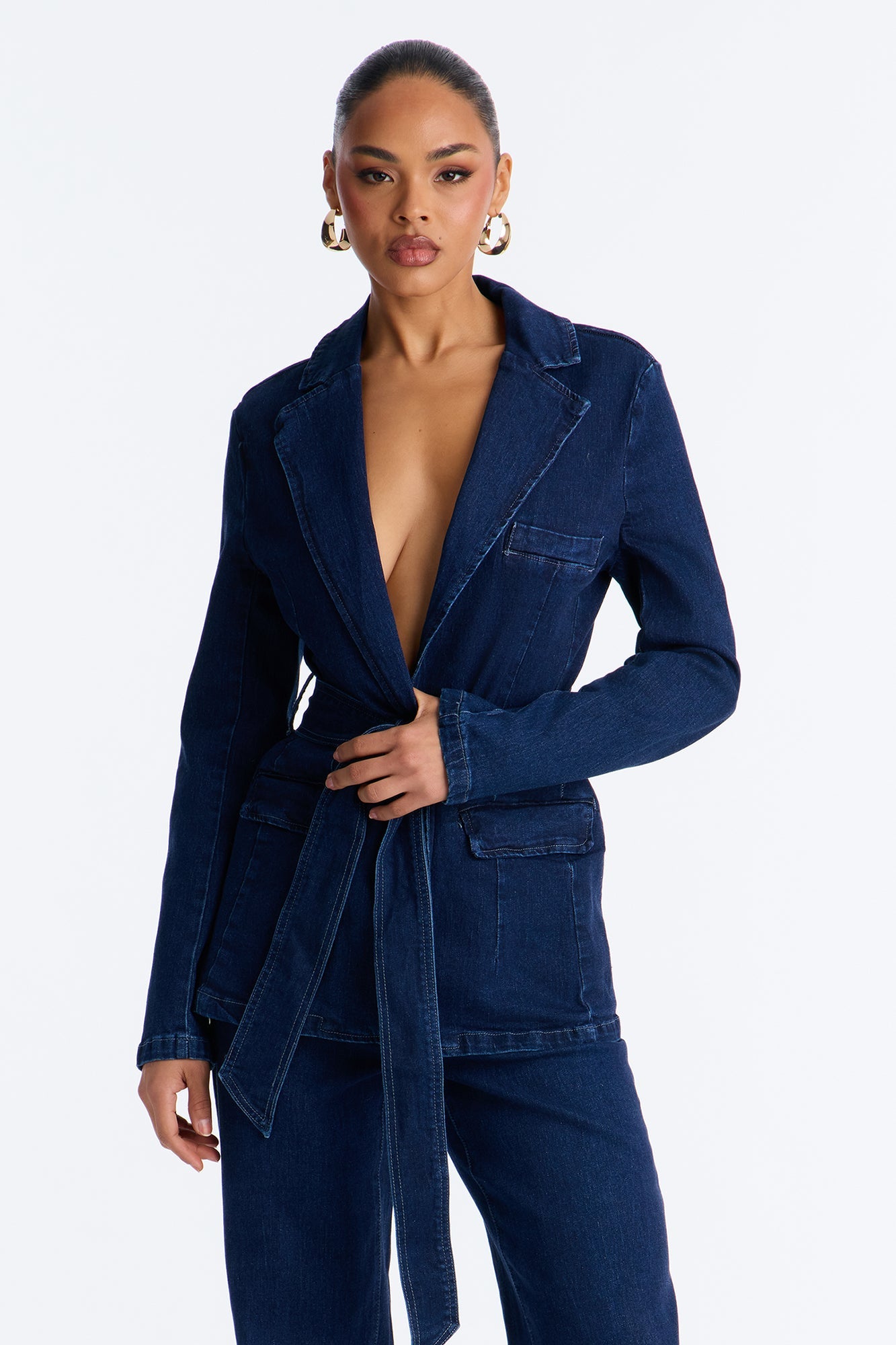 Tall Desiree Washed Denim Blazer Pant Set - Dark Wash