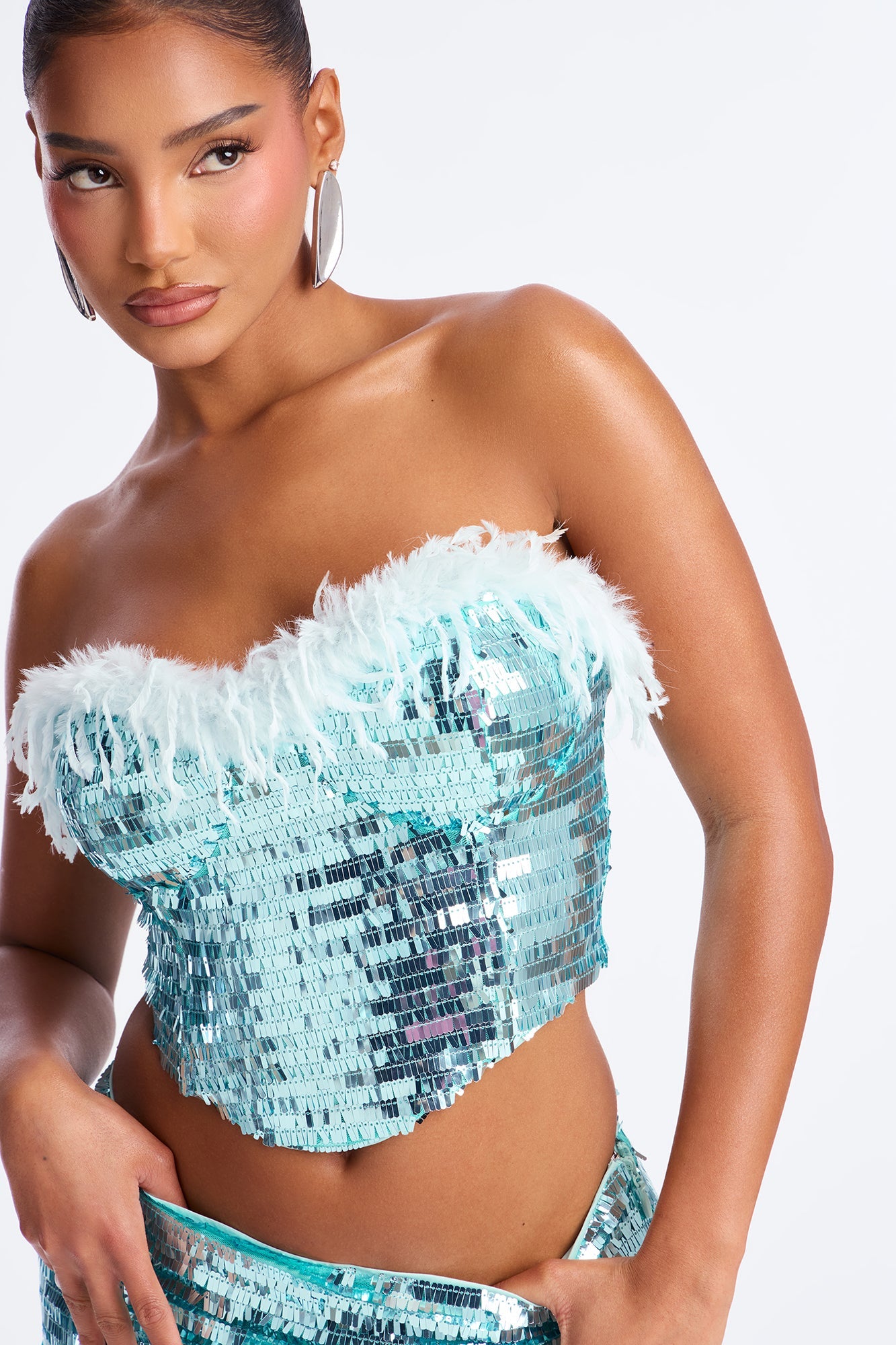 Tatum Feather Sequin Mini Skirt Set - Blue