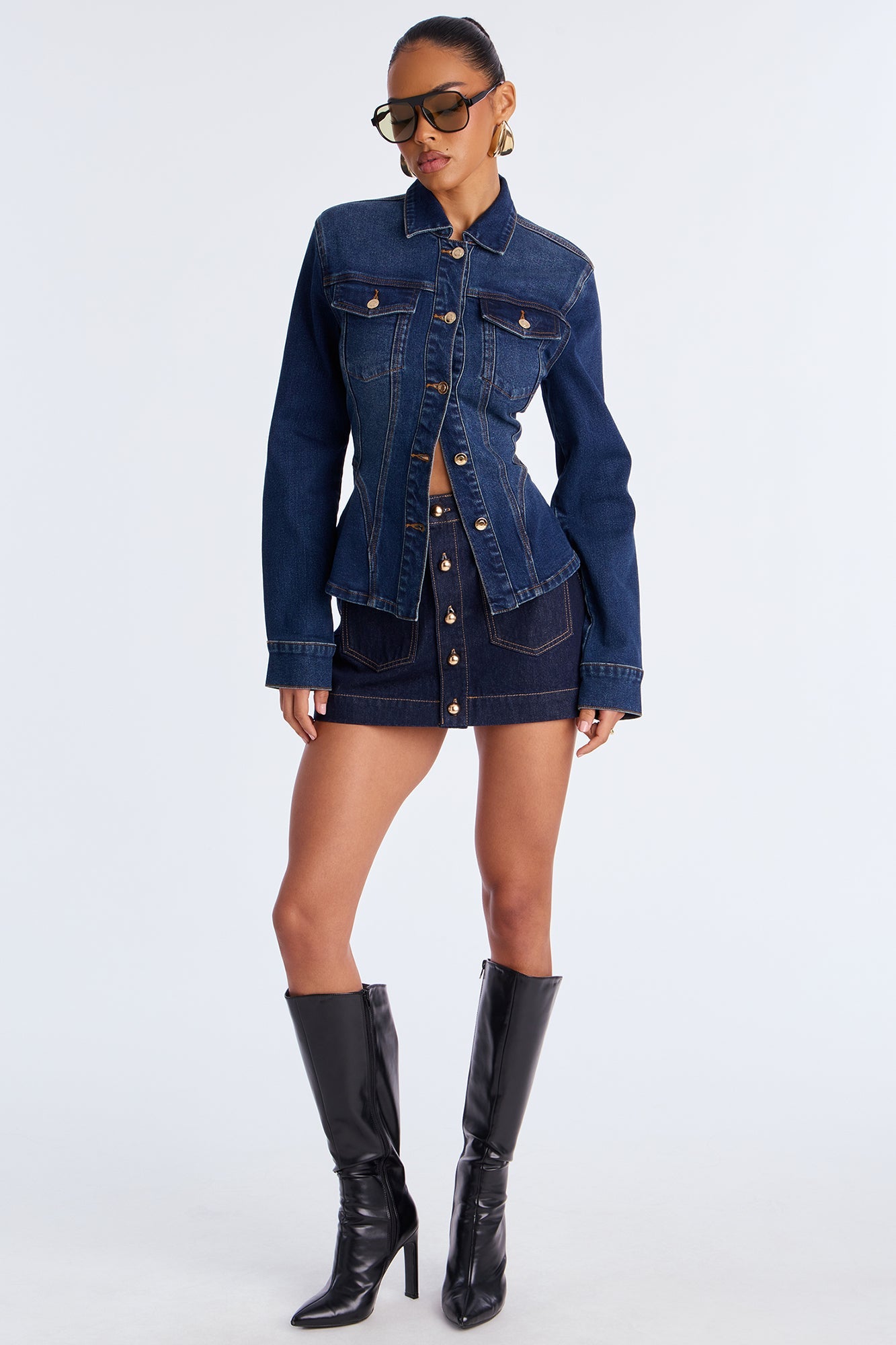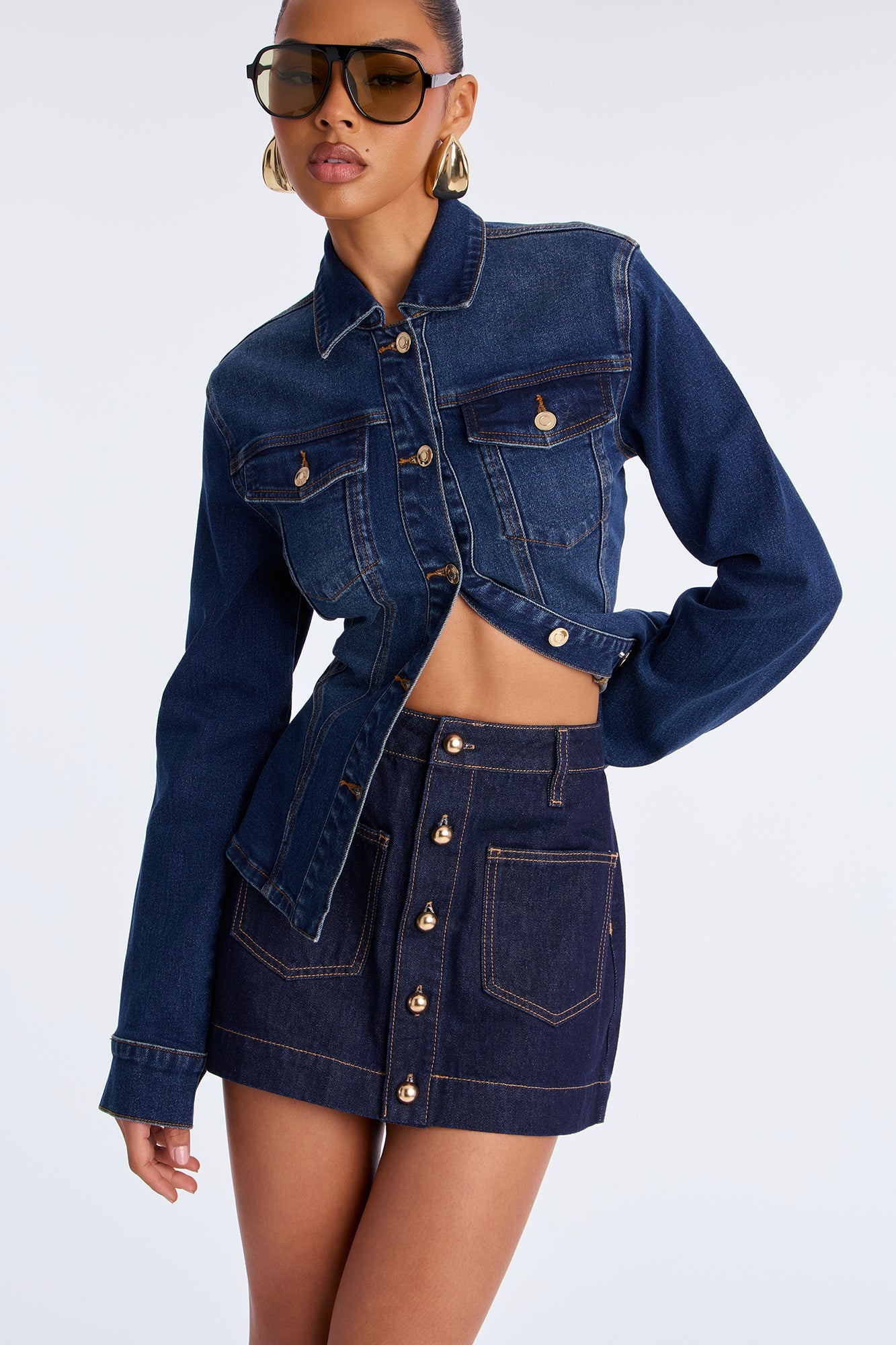 Taylor Button Up Denim Mini Skirt - Rinse Blue Wash
