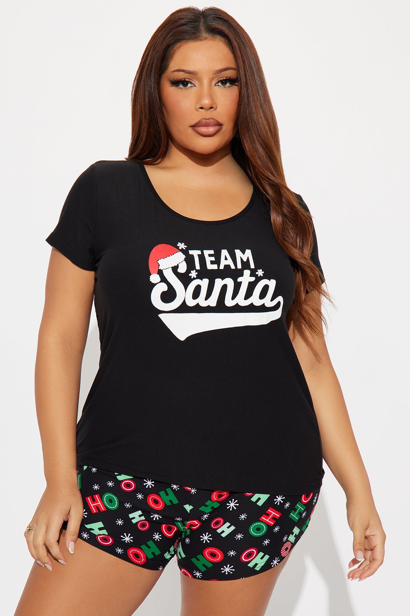 Team Santa Short Sleeve PJ Short Set - Black/combo