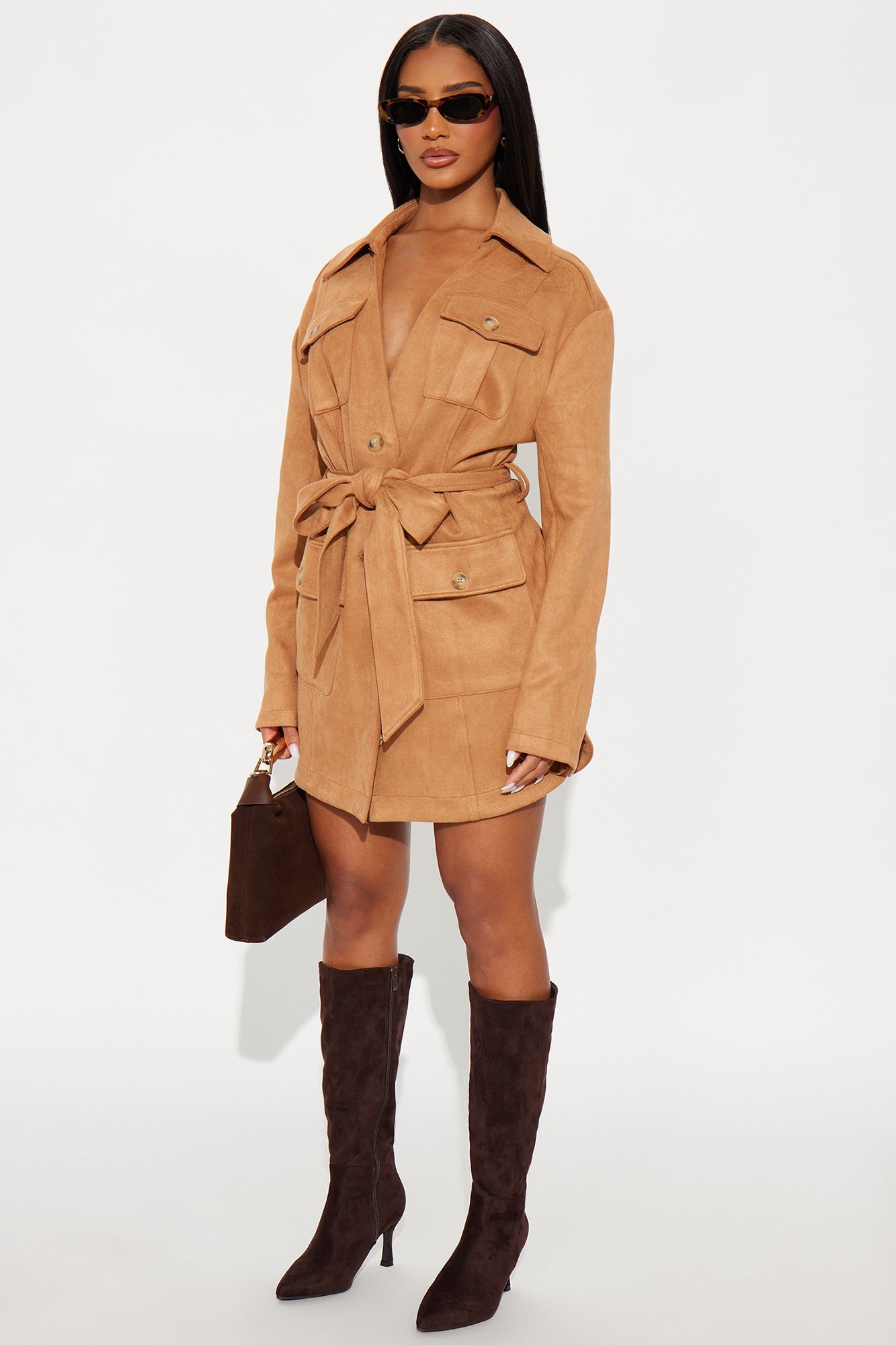 Tessa Tie Waist Faux Suede Mini Dress - Camel