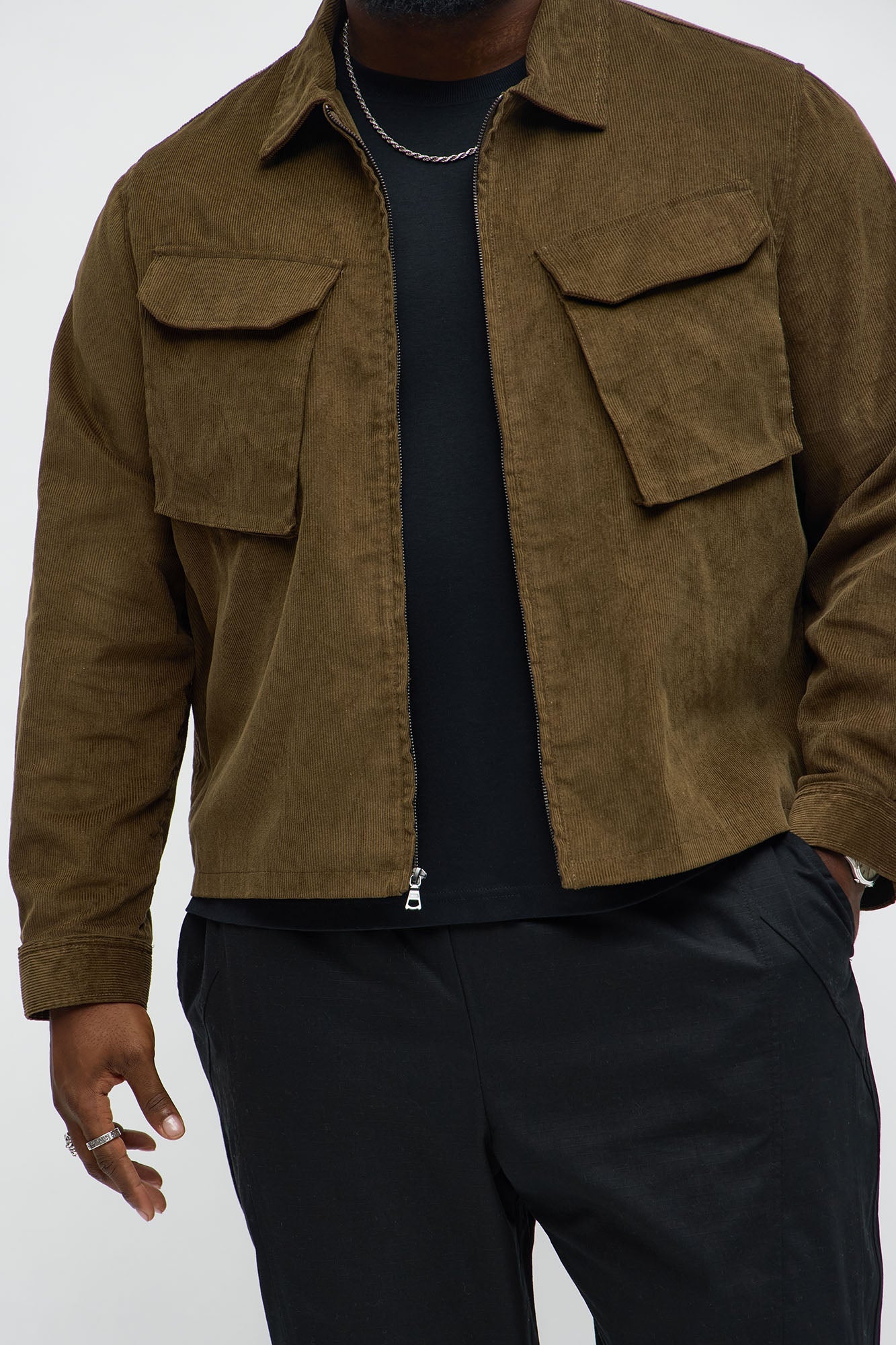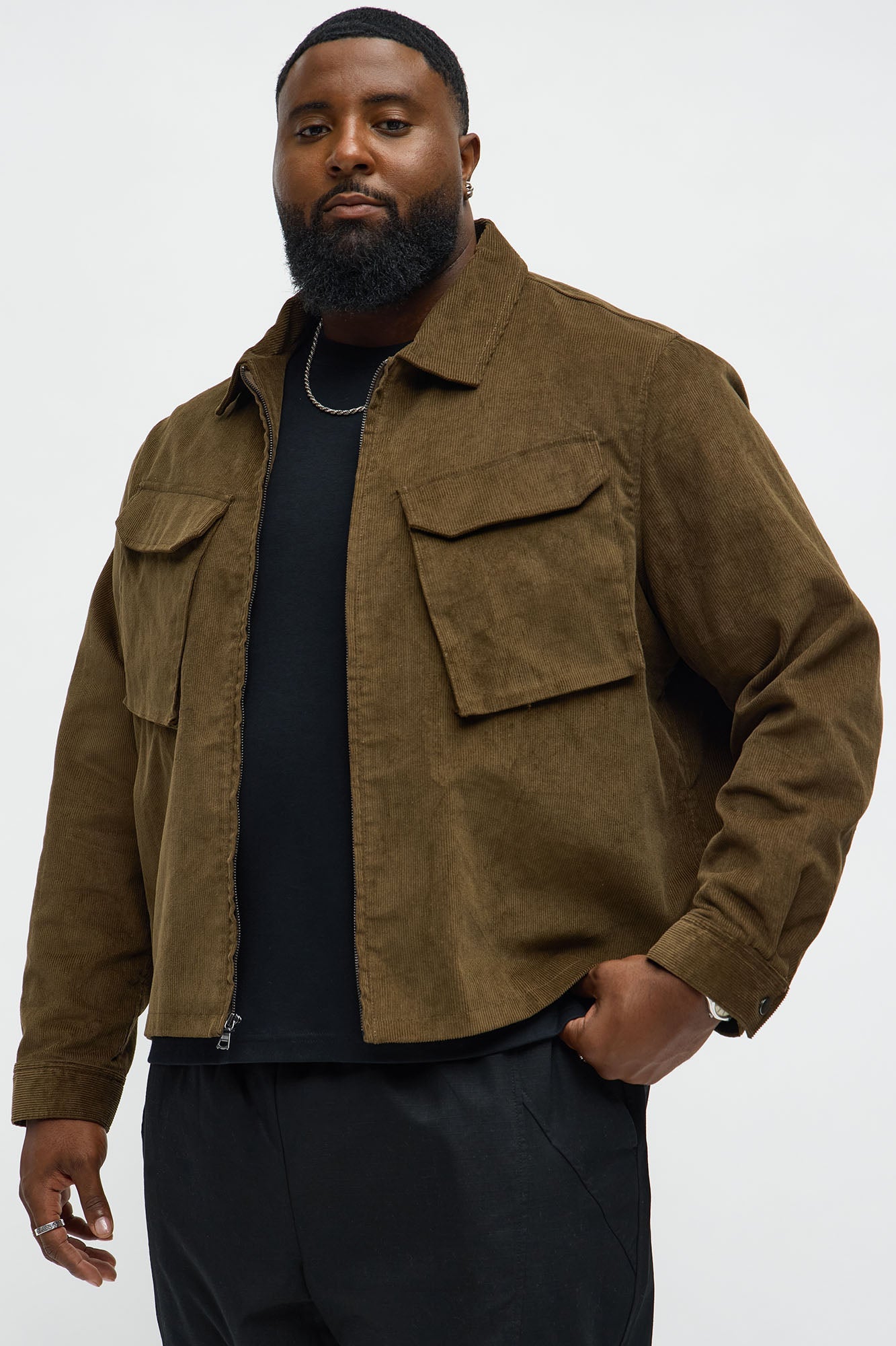 Textured Corduroy Cargo Pocket Zip Jacket - Brown