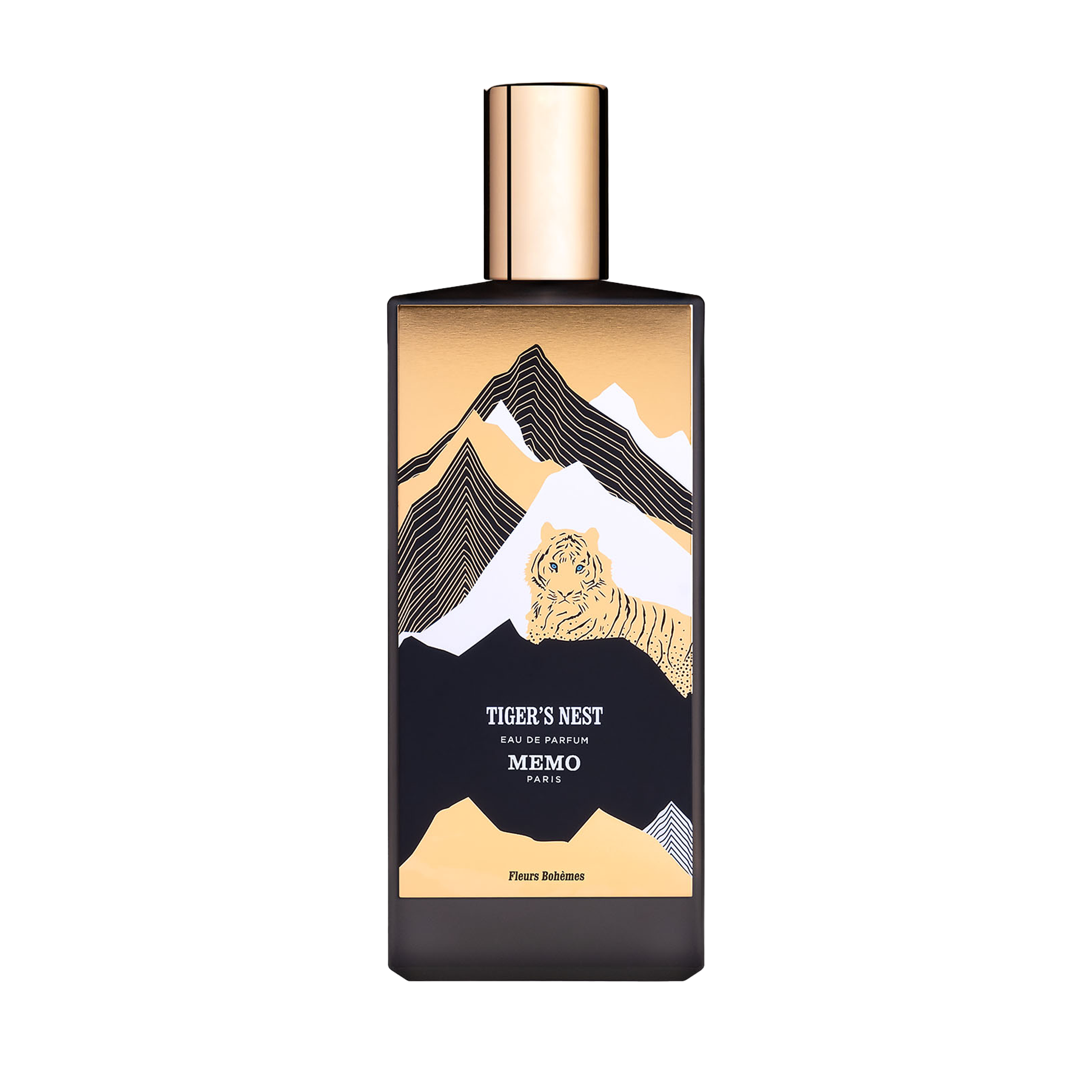 Tiger’s Nest is inspired by the mystical monastery in Bhutan, perched high in the mountains. It opens with absinthe, aldehydes, and lime, creating a sharp, airy brightness. The heart introduces amber, saffron, osmanthus, ylang-ylang, rose, and smoky incense, layering warmth, spice, and floral depth. The base of tolu balsam, vanilla, and papyrus grounds the scent with resinous richness and sacred, meditative warmth.