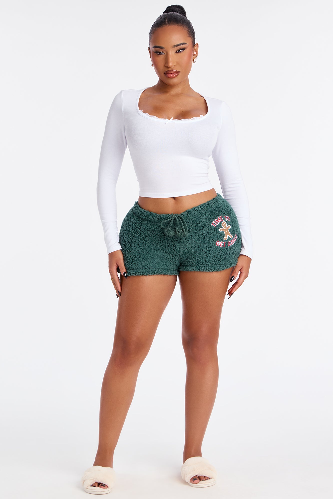 Time To Get Baked Embroidered Sherpa PJ Shorts - Green