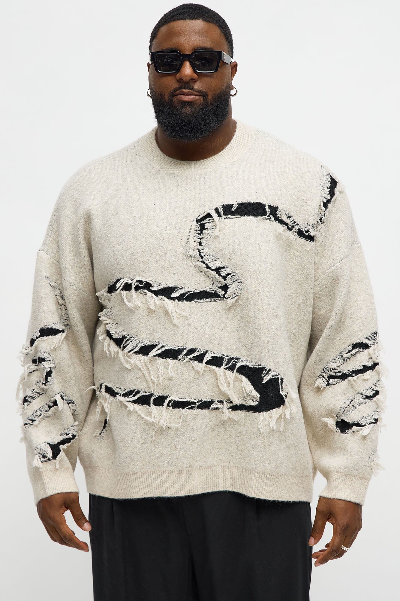 Oversized Trials Distressed Crewneck Sweater - Oatmeal/combo