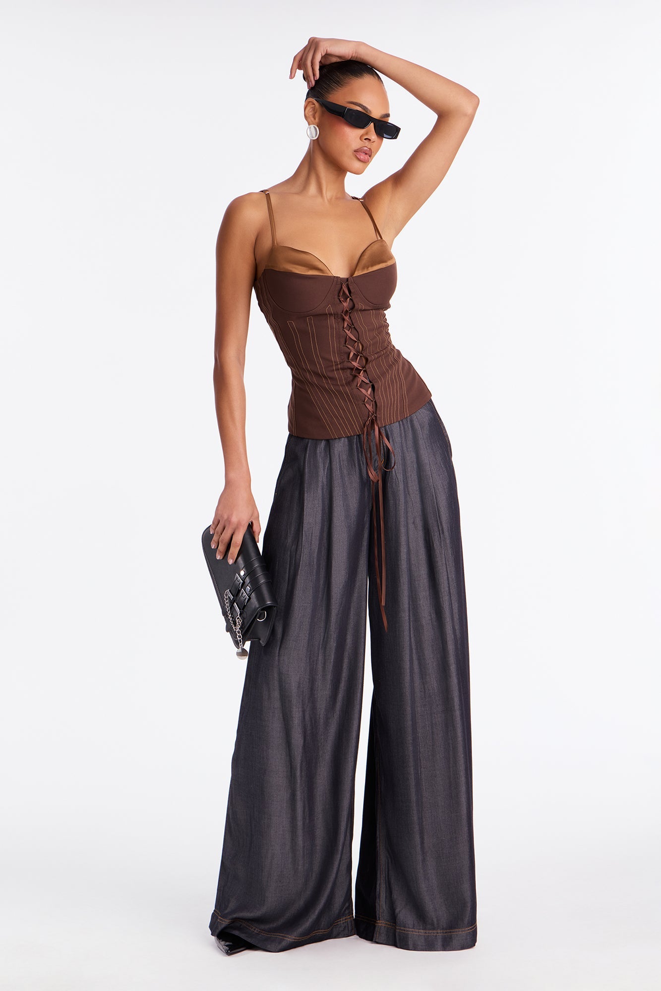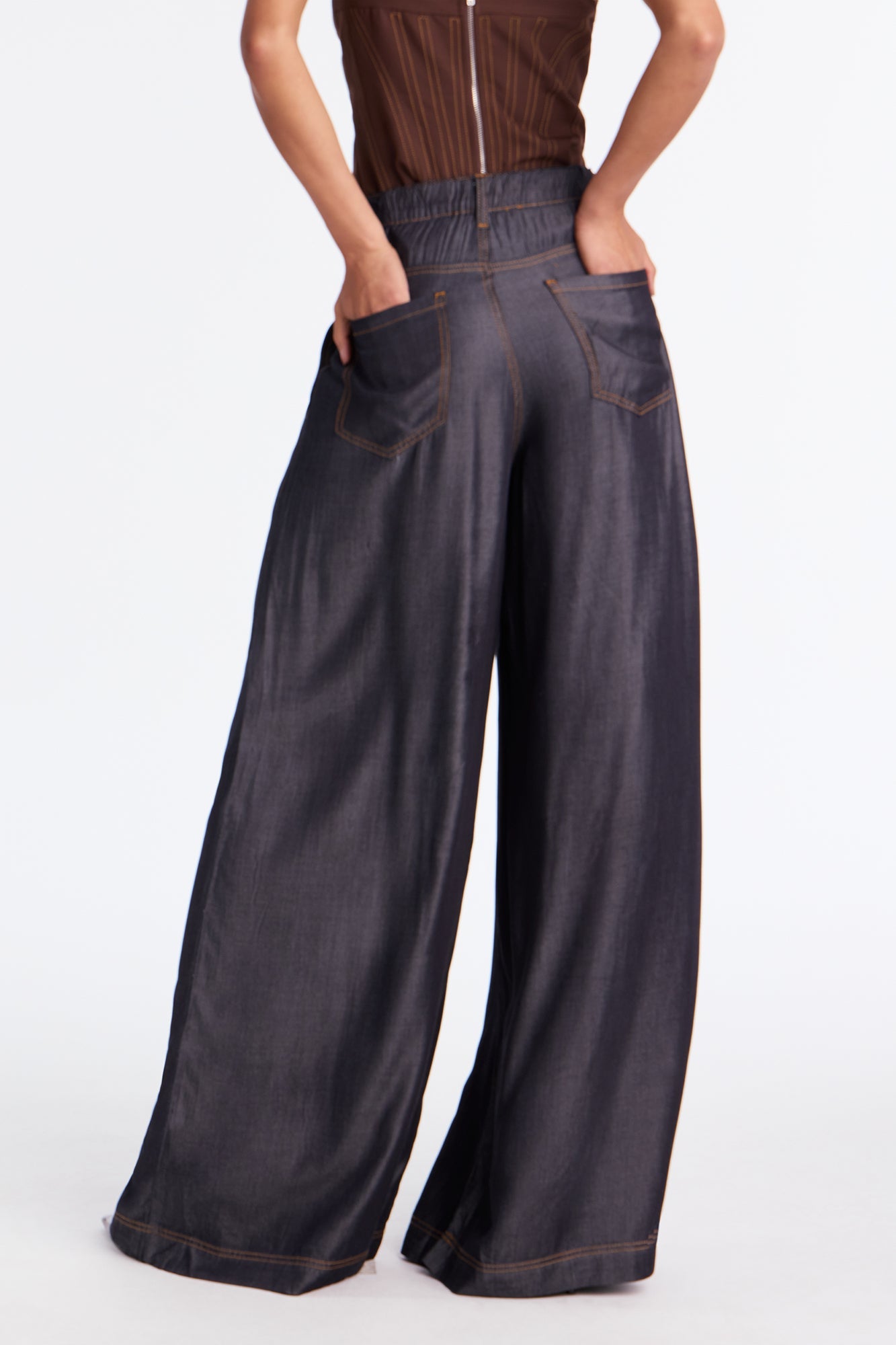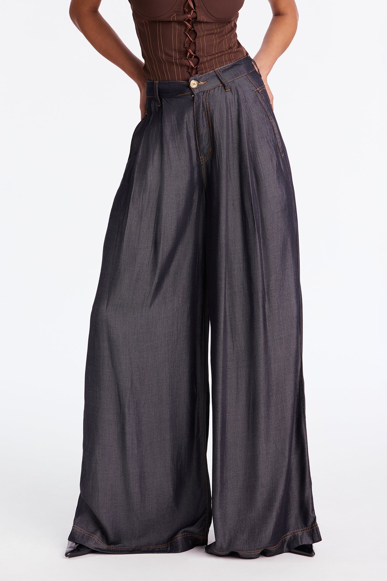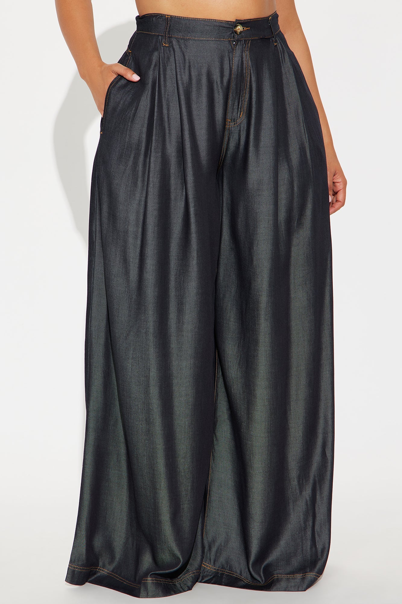 Trust Issues Chambray Wide Leg Pant 33 - Rinse Blue Wash