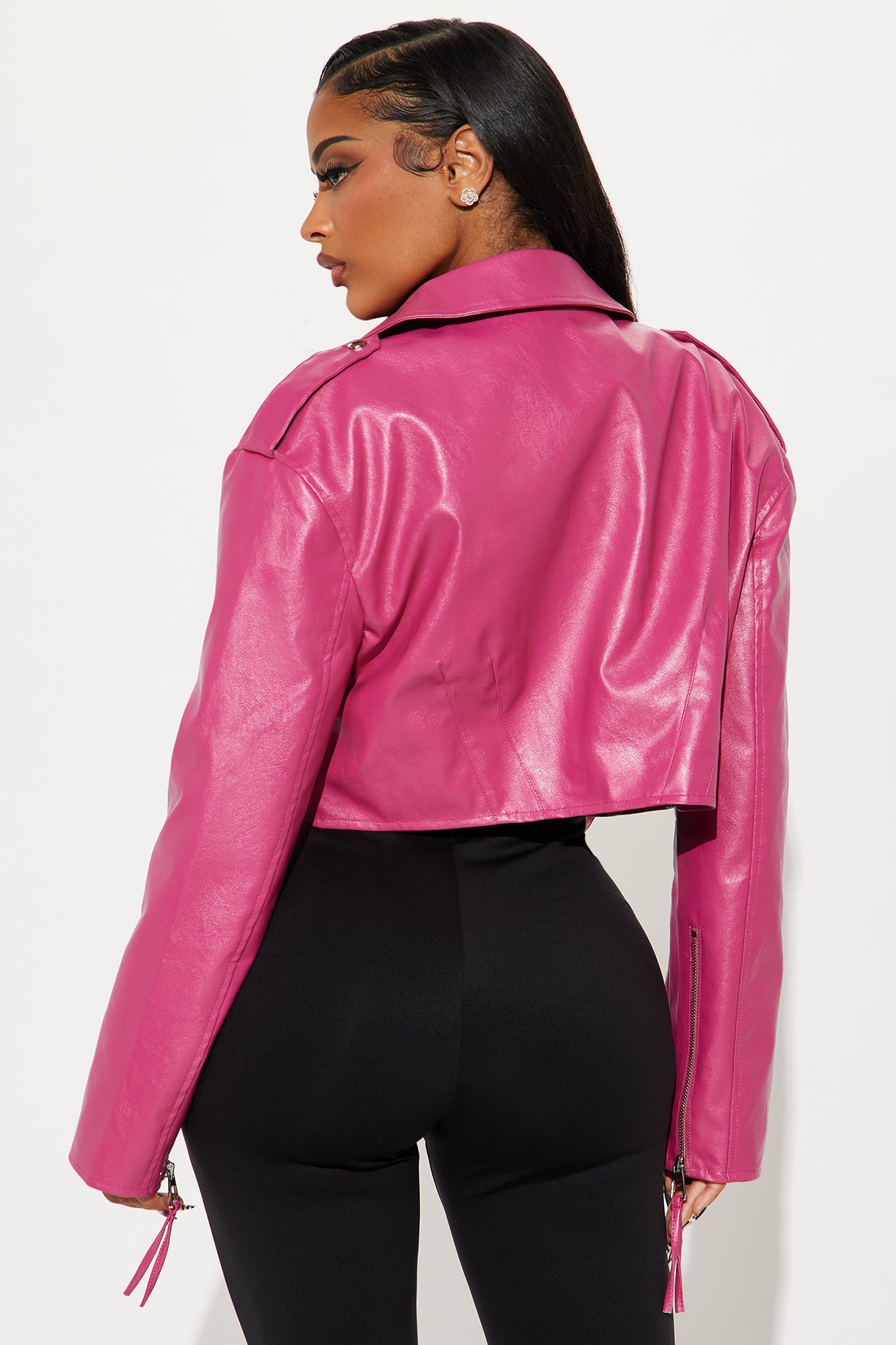 Truth Or Dare Cropped Faux Leather Moto Jacket - Hot Pink