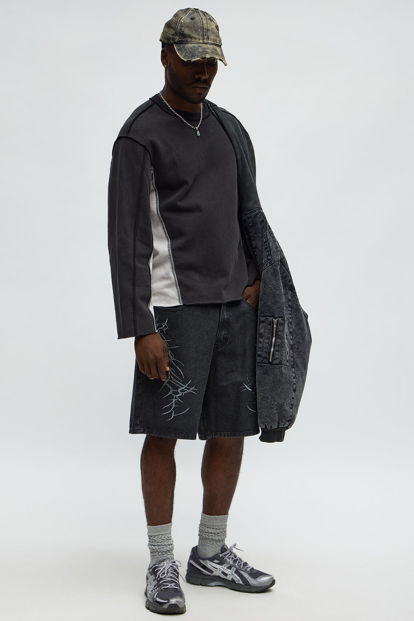 Tyson Relaxed Colorblock Panel Crewneck Sweatshirt - Black Wash