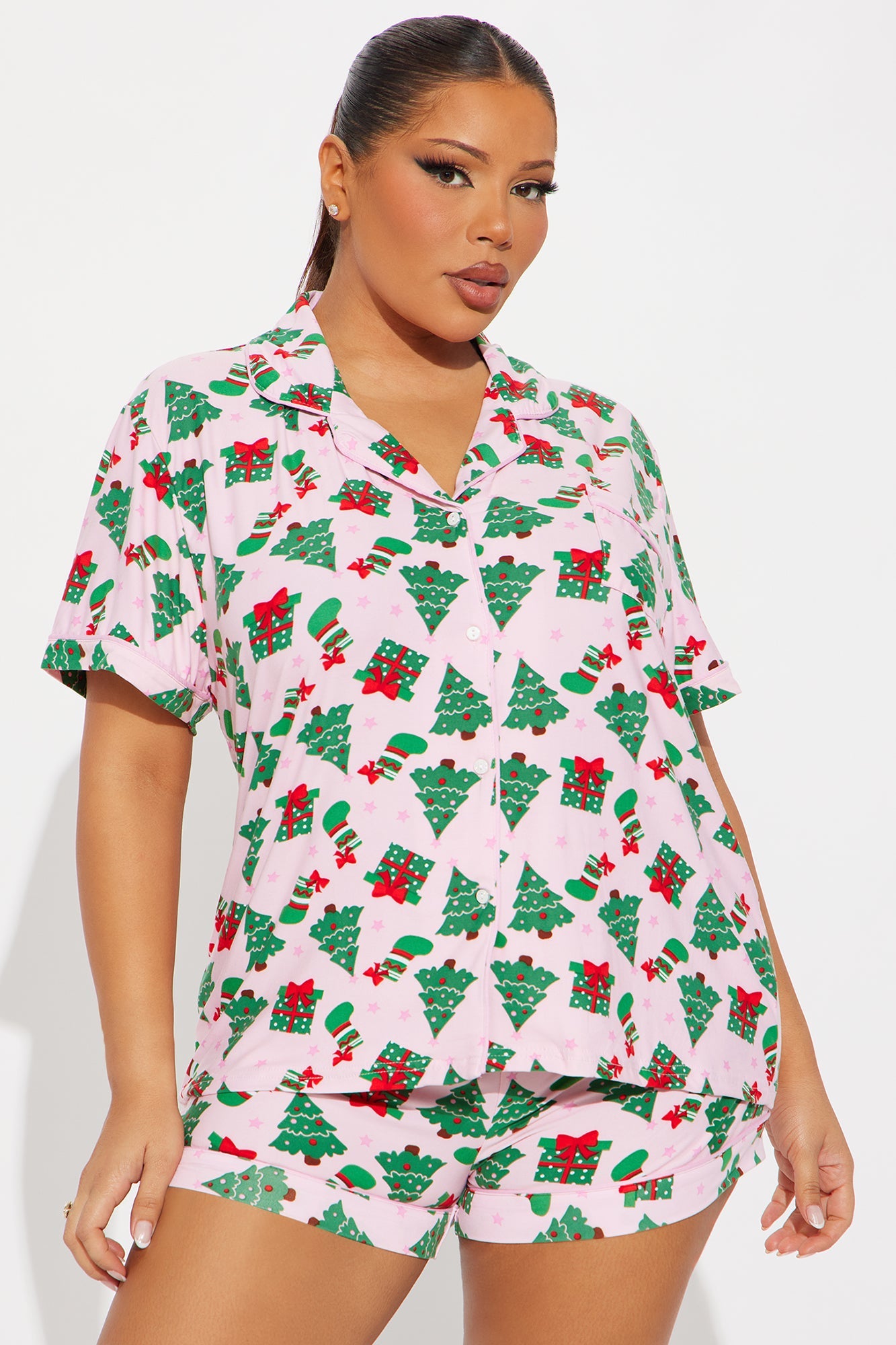 Under The Christmas Tree Short Sleeve PJ Short Set - Pink/combo