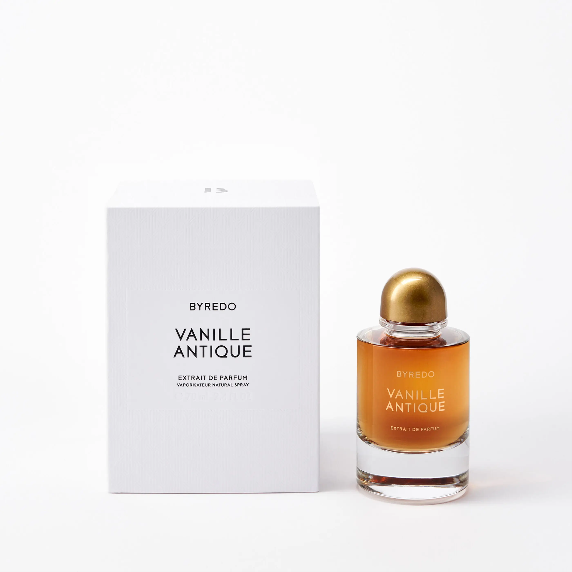 Vanille Antique opens with freesia and plum, offering a floral-fruity shimmer. The heart features amber, cashmere wood, oud, and tuberose, adding richness and depth. The base unfolds into Madagascar vanilla beans and cistus oil, creating a warm, resinous vanilla foundation.