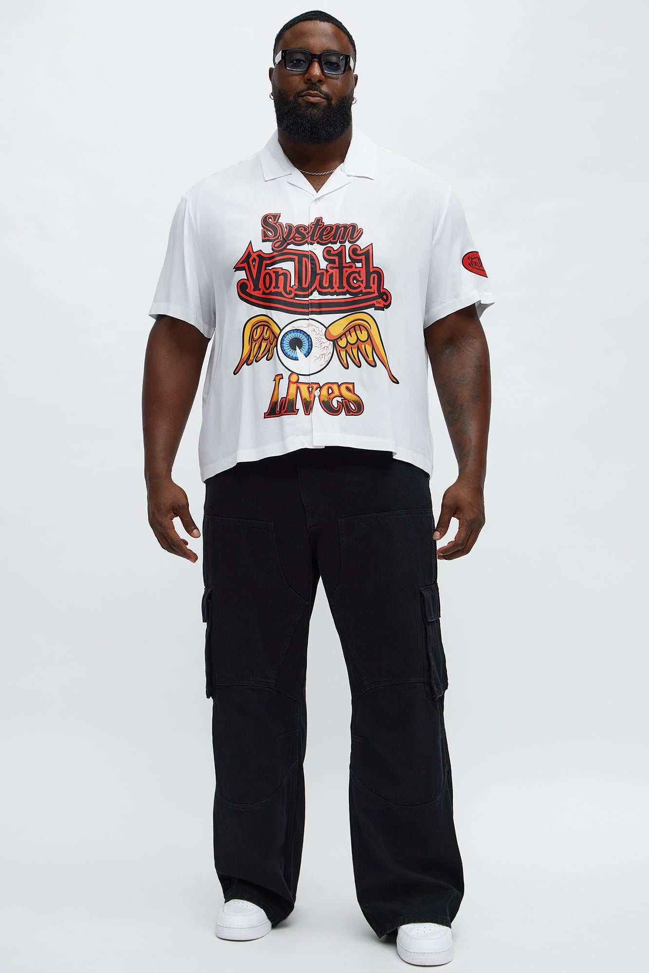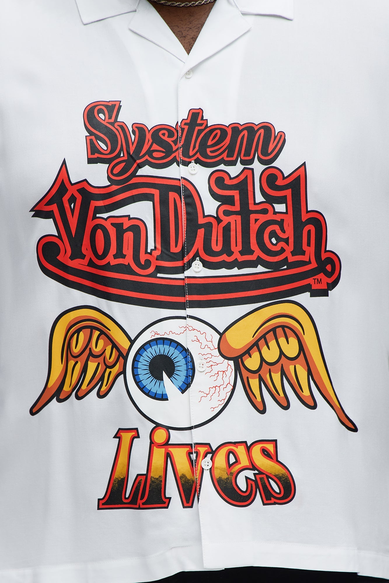 Von Dutch Cropped Logo Button Up Shirt - White