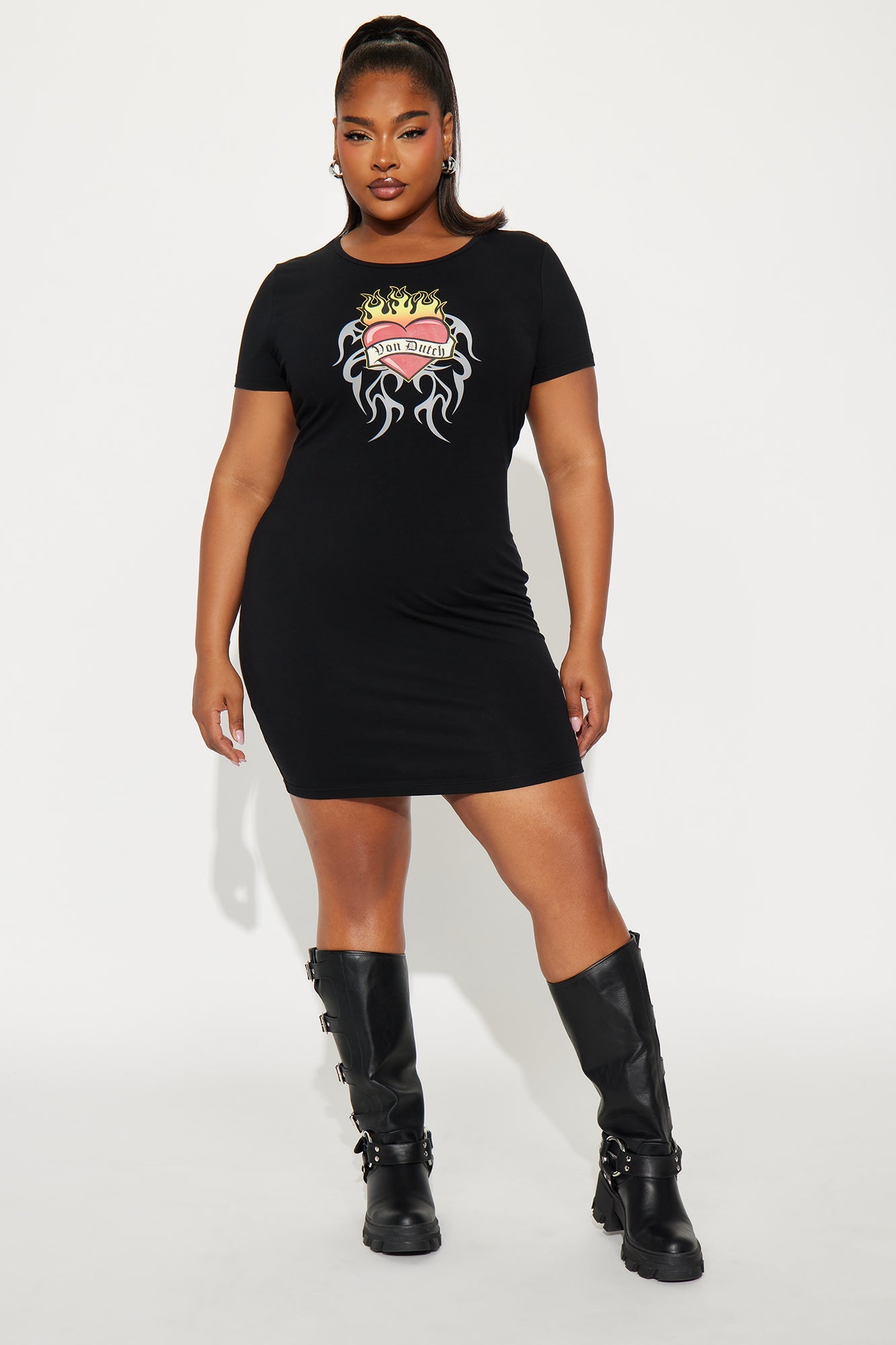 Von Dutch Fiery Heart Muscle Tee Mini Dress - Black