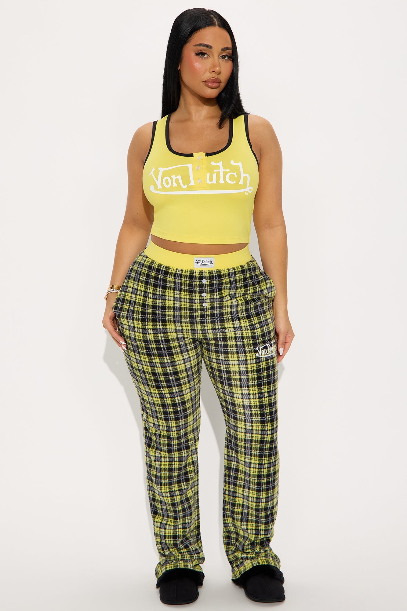 Von Dutch Tank PJ Fleece Boxer Pant Set - Black/Yellow