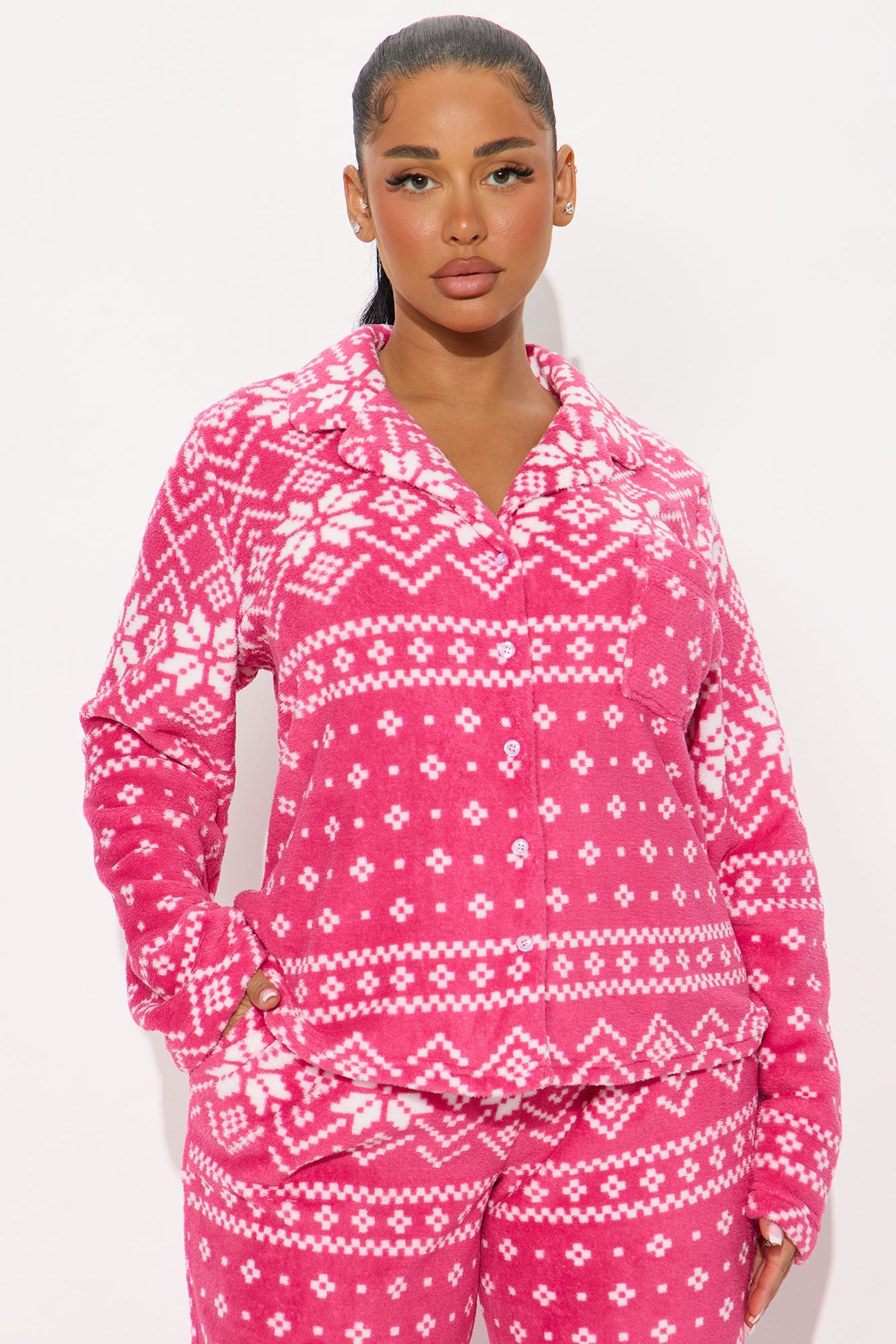 Winter Cutie Plush Long Sleeve PJ Pant Set - Pink