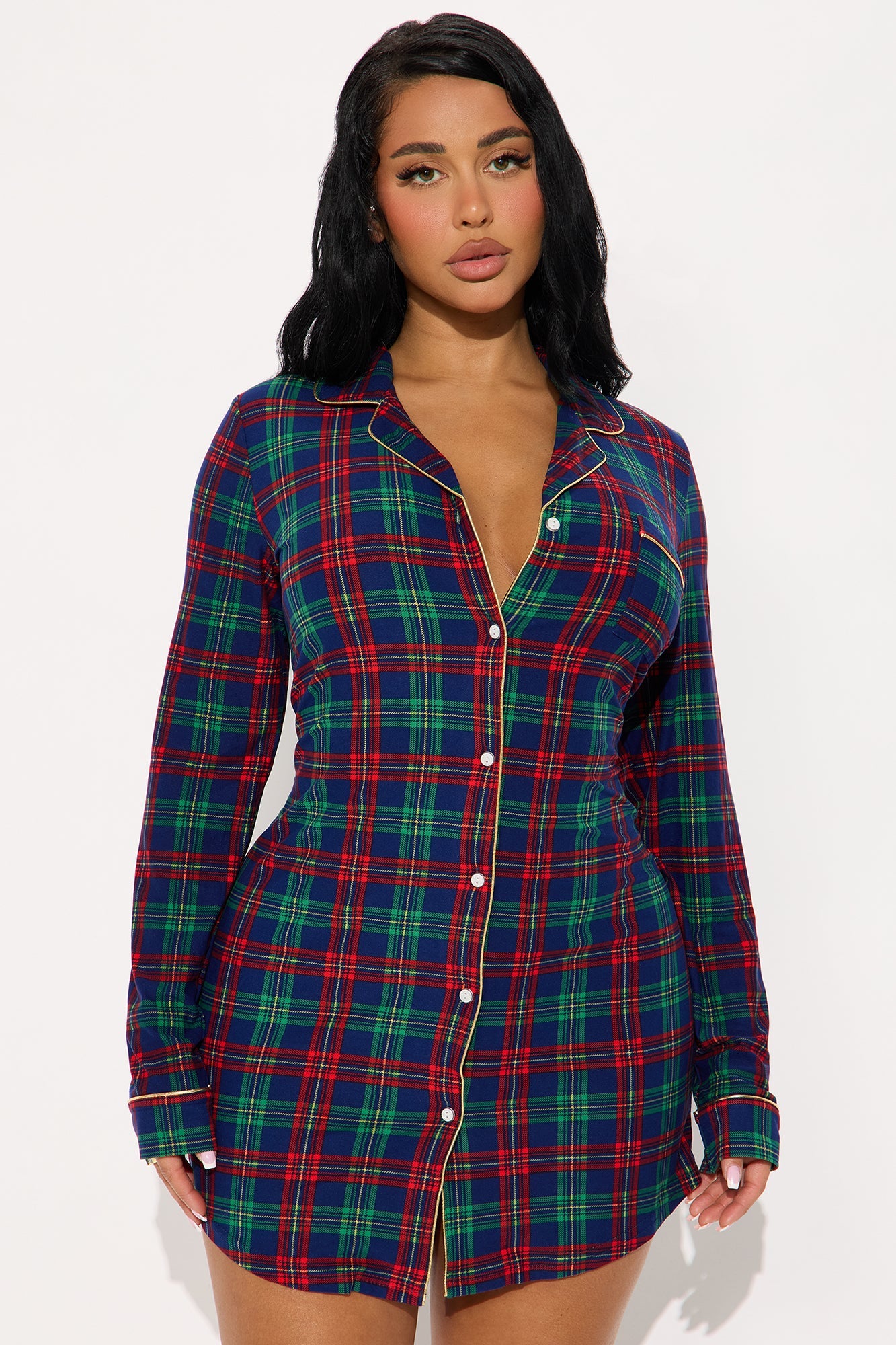 Winter Dreams Glitter Long Sleeve PJ Sleep Shirt - Navy/combo
