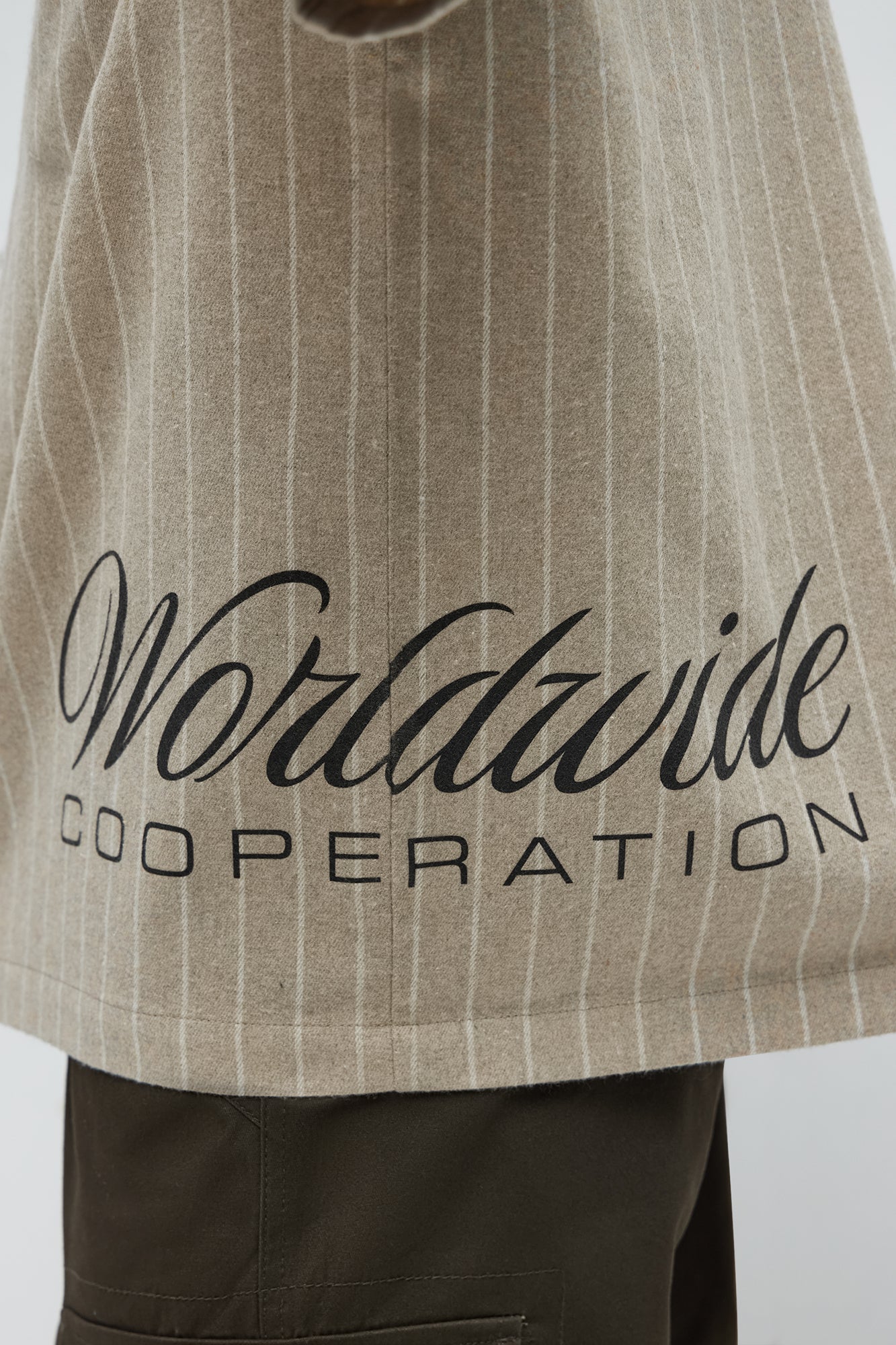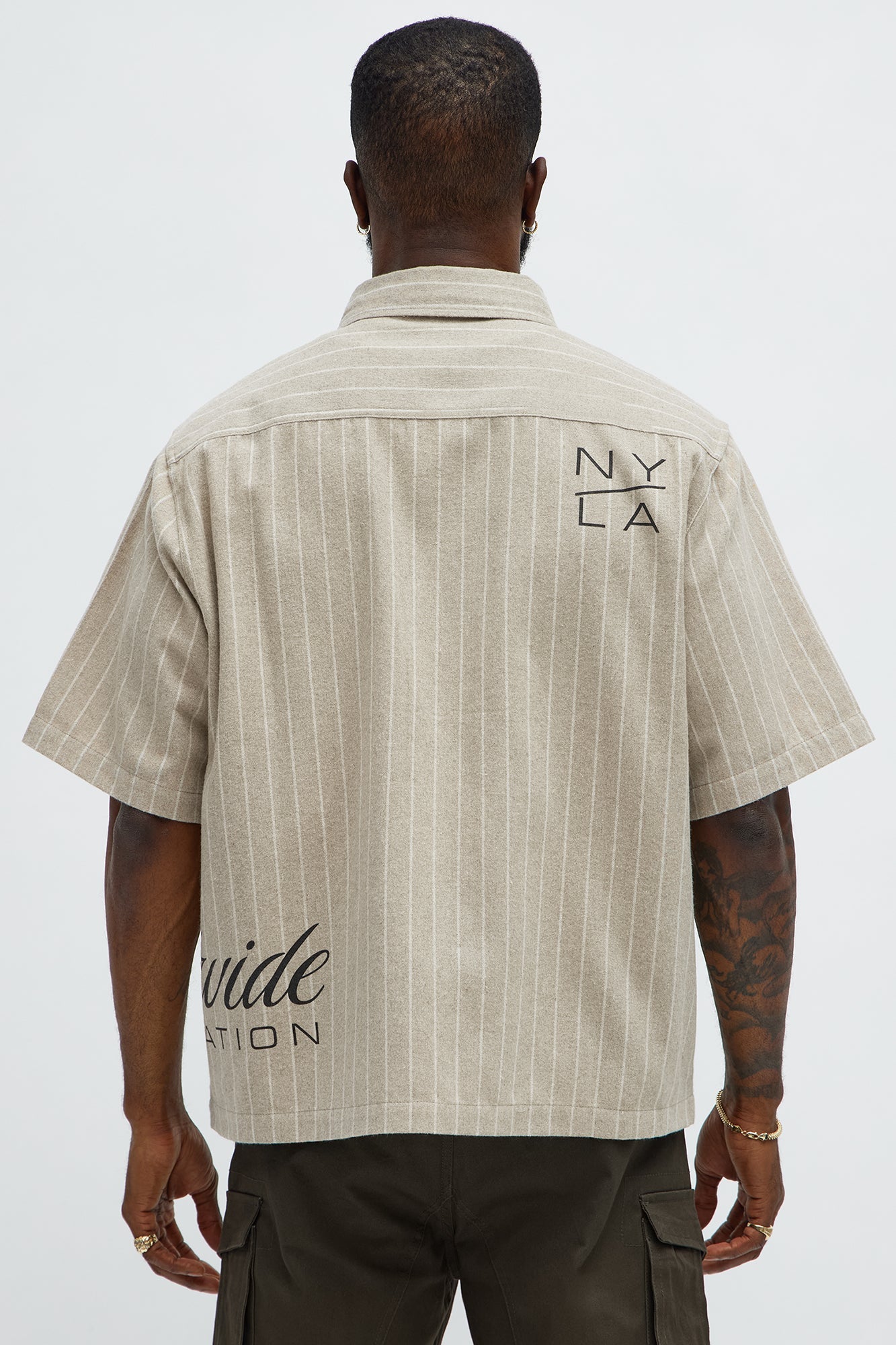 Worldwide Striped Cropped Button Up Shirt - Stone
