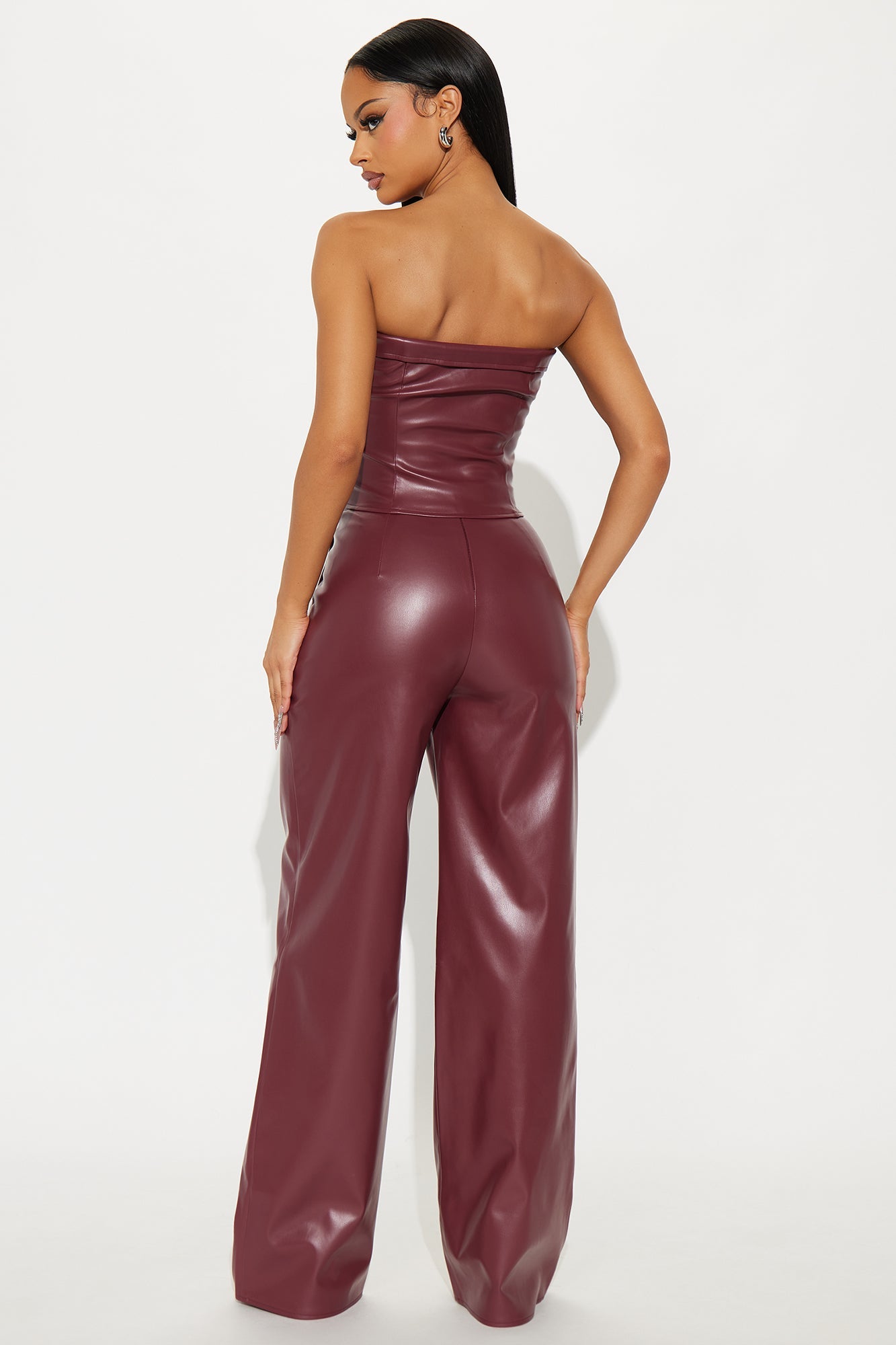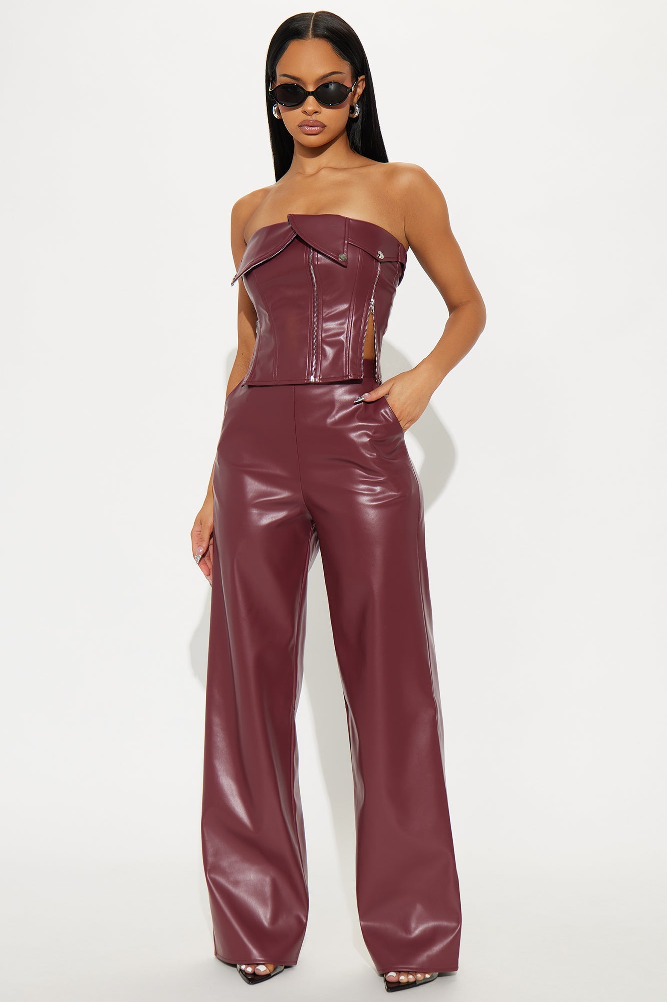 Zip Me Up Faux Leather Pant Set - Burgundy